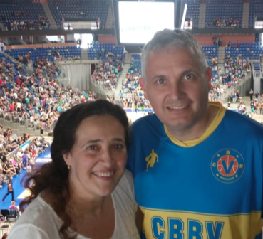 Veo todos los partidos que puedo del equipo de Promesas Comarcal, porque ahí juega mi marido, al que conocí hace 31 años en una pista de baloncesto, y desde entonces lo acompaño siempre que puedo en donde juegue.